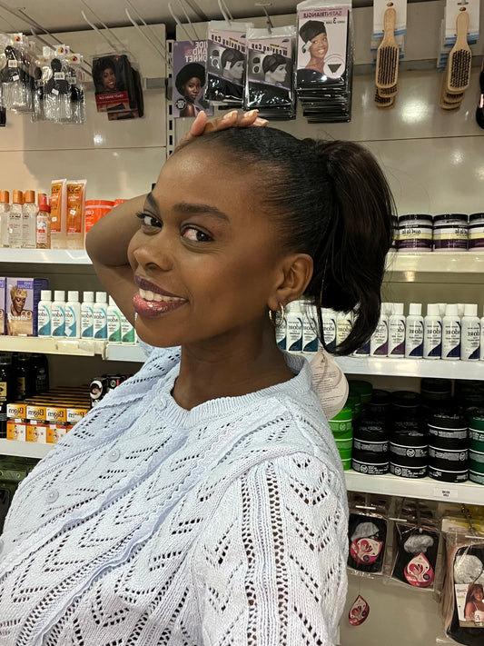POSTICHE GLAMOUR - QUEUE DE CHEVAL KINKY BOUCLÉE